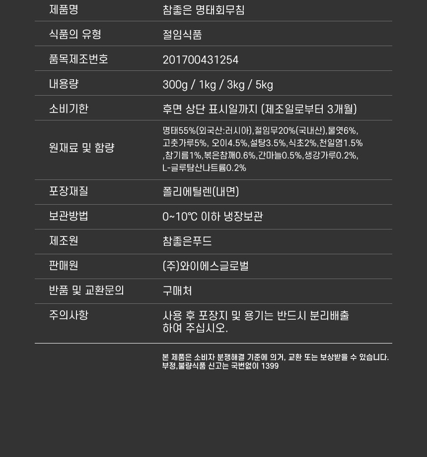HOME > 삶의활력 > 한석길의 명태회무침 1kg