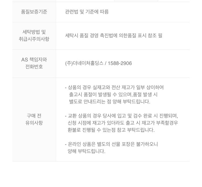 - 상품의 불량에 의한 반품, 교환, A/S, 환불, 품질보증 및 피해보상 등에 관한 사항은 소비자분쟁해결기준(공정거래위원회 고시)에 따라 받으실 수 있습니다.