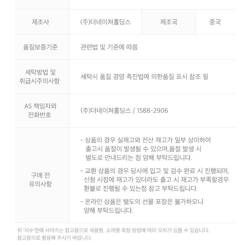 - 상품의 불량에 의한 반품, 교환, A/S, 환불, 품질보증 및 피해보상 등에 관한 사항은 소비자분쟁해결기준(공정거래위원회 고시)에 따라 받으실 수 있습니다.