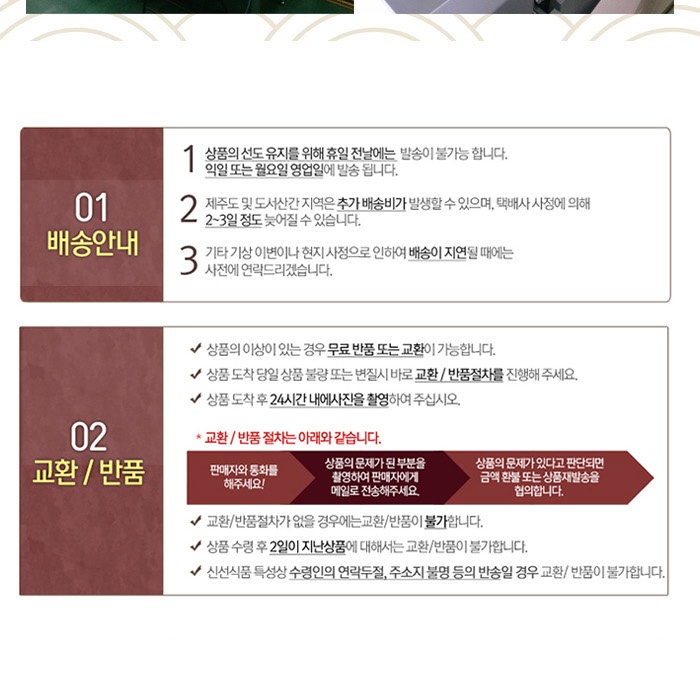 • 배송안내: 전국 배송이 가능하며, 토요일과 공휴일을 제외하고 평균 2~5일 소요됩니다.