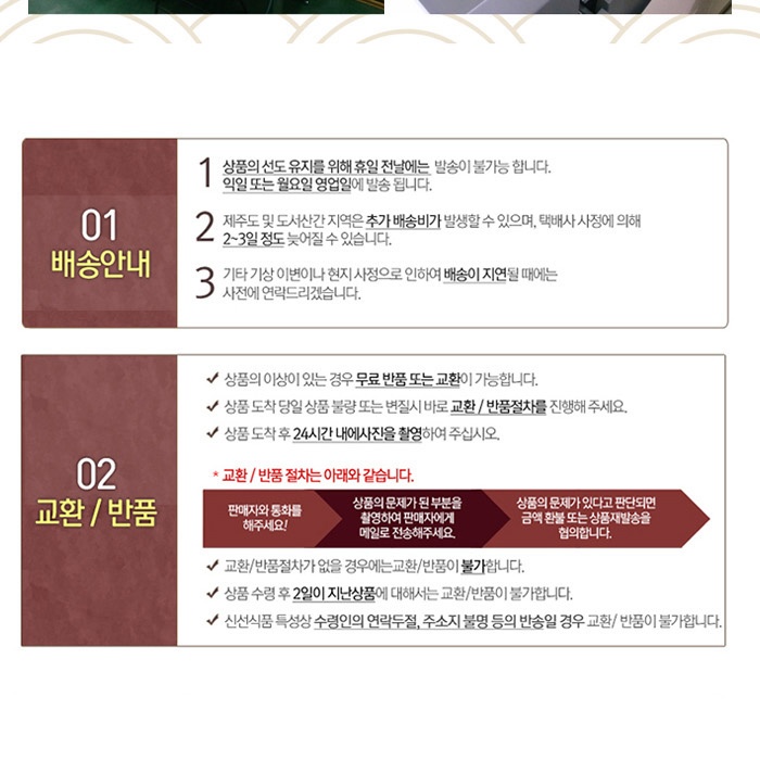- 배송안내: 전국 배송이 가능하며, 토요일과 공휴일을 제외하고 평균 2~5일 소요됩니다.