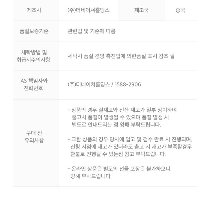 - 교환/반품 안내: 고객변심 및 주문착오에 의한 교환/반품은 제품 수령일로부터 7일 이내 가능합니다.