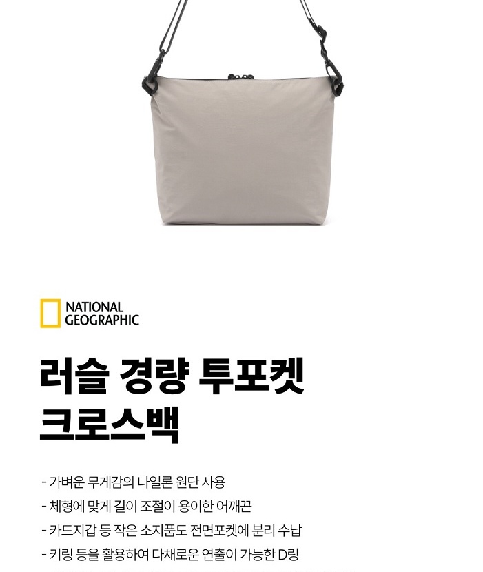 HOME > 일상의행복 > 내셔널지오그래픽 러슬 경량 투포켓 크로스백 N256ACR010