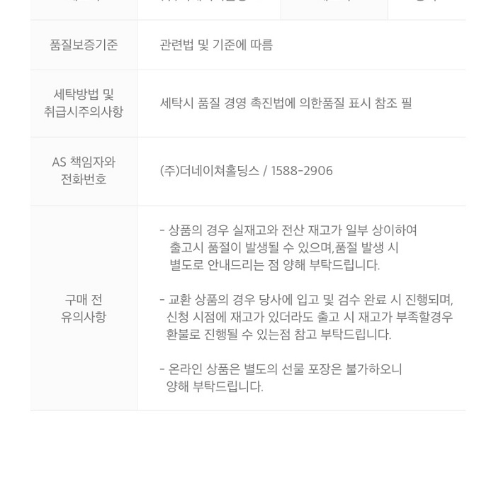 - 상품의 불량에 의한 반품, 교환, A/S, 환불, 품질보증 및 피해보상 등에 관한 사항은 소비자분쟁해결기준(공정거래위원회 고시)에 따라 받으실 수 있습니다.