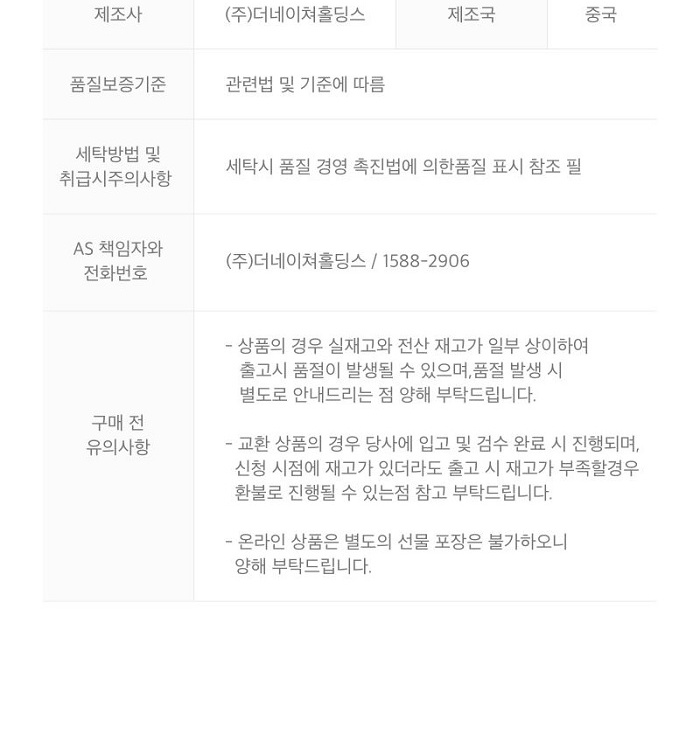 - 상품의 불량에 의한 반품, 교환, A/S, 환불, 품질보증 및 피해보상 등에 관한 사항은 소비자분쟁해결기준(공정거래위원회 고시)에 따라 받으실 수 있습니다.
