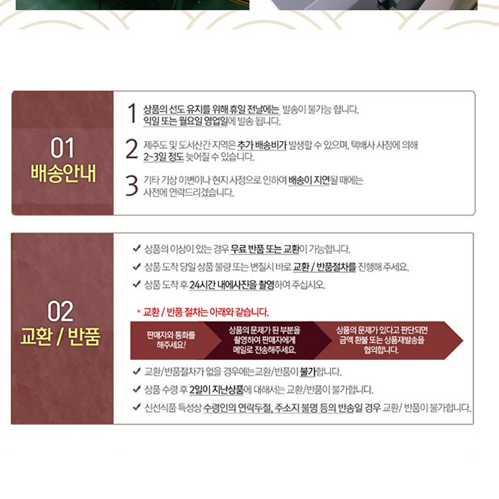 • 배송안내: 전국 배송이 가능하며, 토요일과 공휴일을 제외하고 평균 2~5일 소요됩니다.